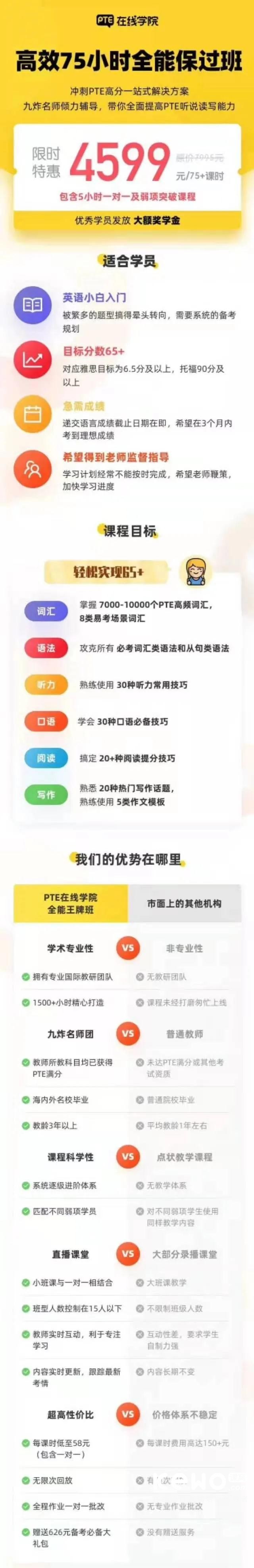 PTE考试中题型较多、变化较大、趣味性也较强。口语因为是电脑录音,更适合同学们自己练习。机器评分完全不看你的语法,你的流利度和发音好了,你就可以拿到近乎满分的成绩。写作部分对词汇和论点的逻辑性要求都比较低。只要用词到位,减少语法和拼写错误,写作并不会成为同学们的障碍。
