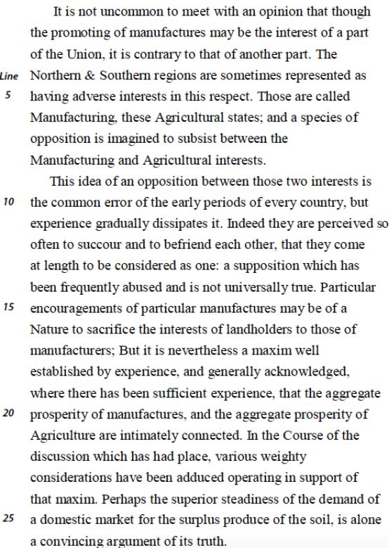 文章第一段写到农业和手工业对立的观点,这是作者的方面观点,因为第二段开始就是上述观点是错误的,进而表明了自己的立场,提出了自己的观点,即19-21行。三四段是作者对反面观点的批判。五段以后是作者自己的论据。