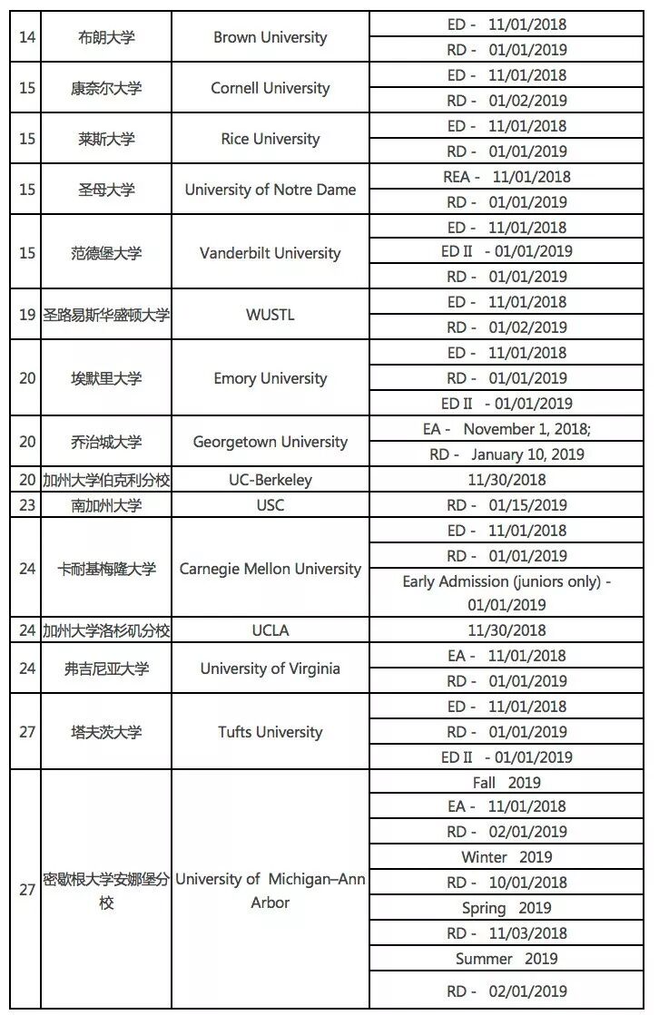 了解了申请趋势,也要了解申请截止日期。下面一起随快报君来看看美国秋季申请大军的申请截止日期~有些学校有春季入学,大家可以看标有Spring的学校。
