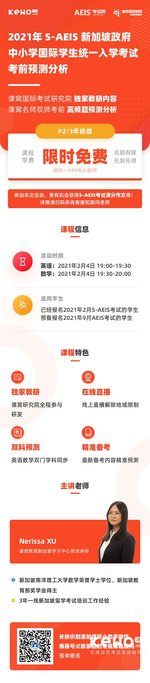 课窝教育,作为一家专注于新加坡、澳大利亚、英国、美国留学考试与国际课程教育培训机构,凭借课窝国际考试研究院专业团队的教研实力、课窝教育师资团队一线丰富的教学经验,依托课窝云在线教育系统以及课窝AI自适应学习系统,为广大学生提供专业、系统的在线直播课程,尽可能减少新冠肺炎疫情对学生们的备考影响。