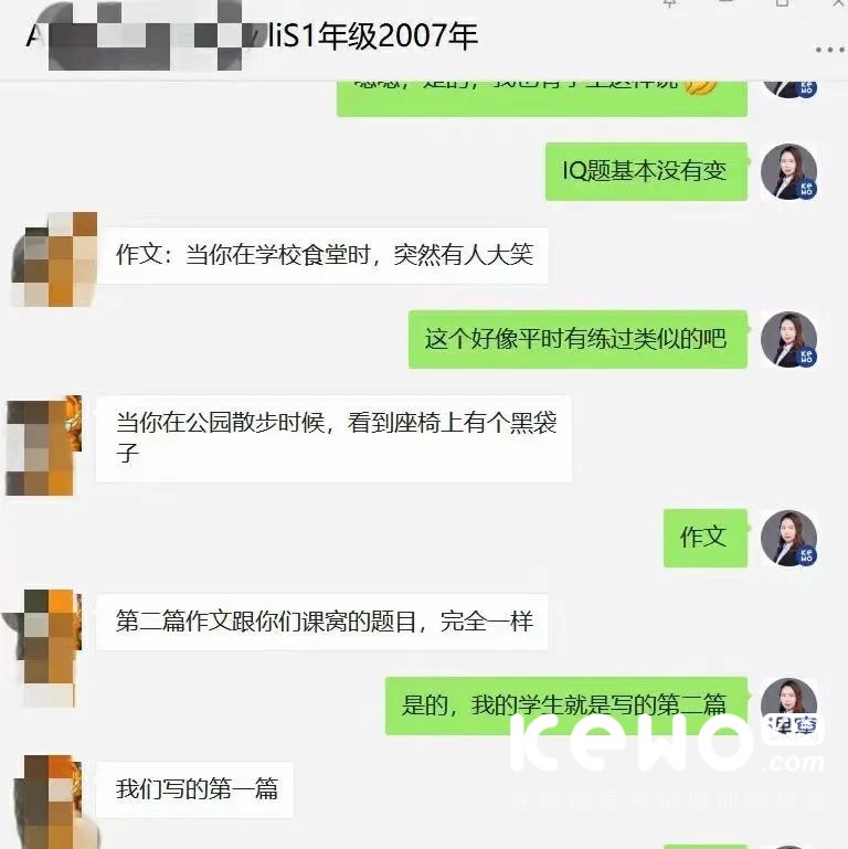 而更早前的AEIS考试,课窝教育的老师就押中过中二作文题目——“学生应不应该在假期打工”。这个题目,在南京集训的孩子在周测试的作文中写过,老师也批改修正过。在新加坡本部一对一培训的孩子们也写过。