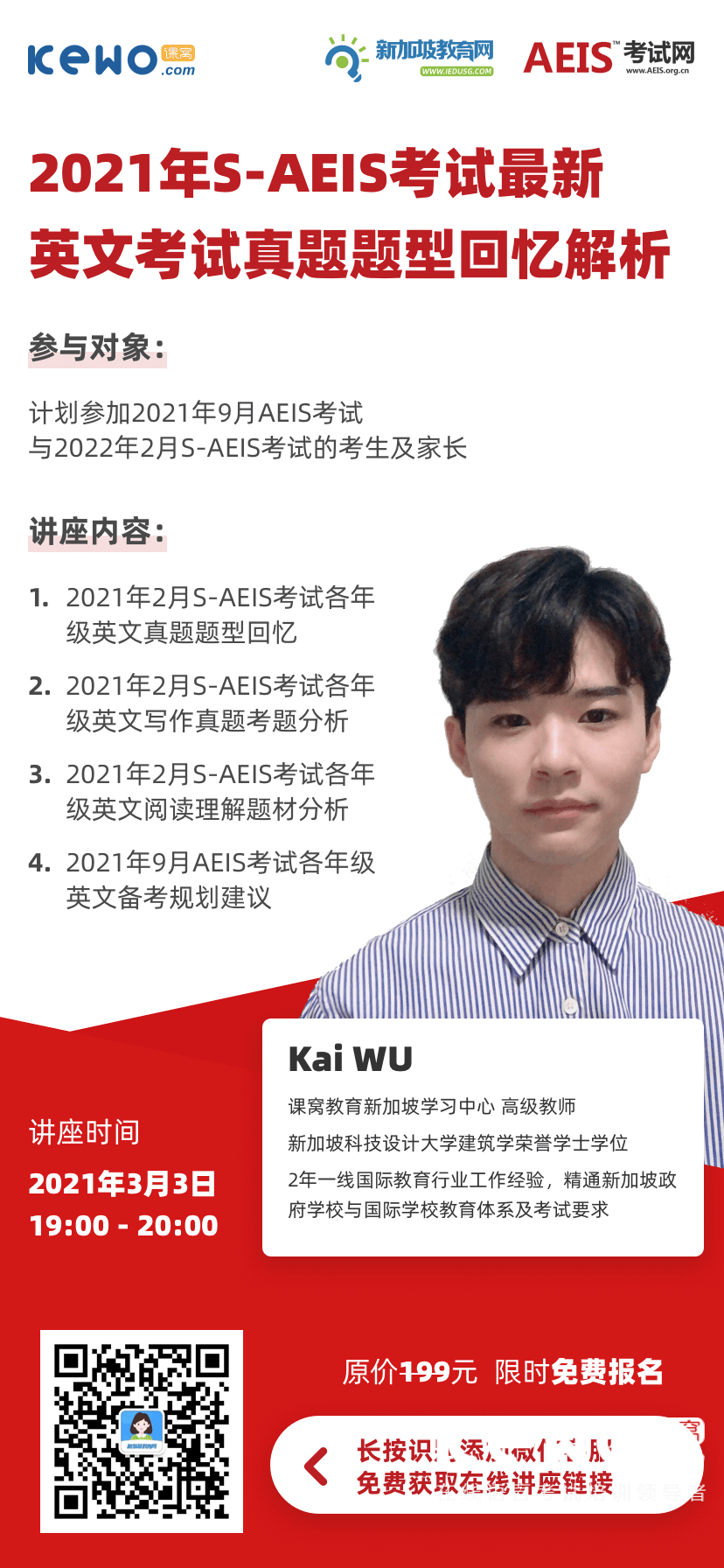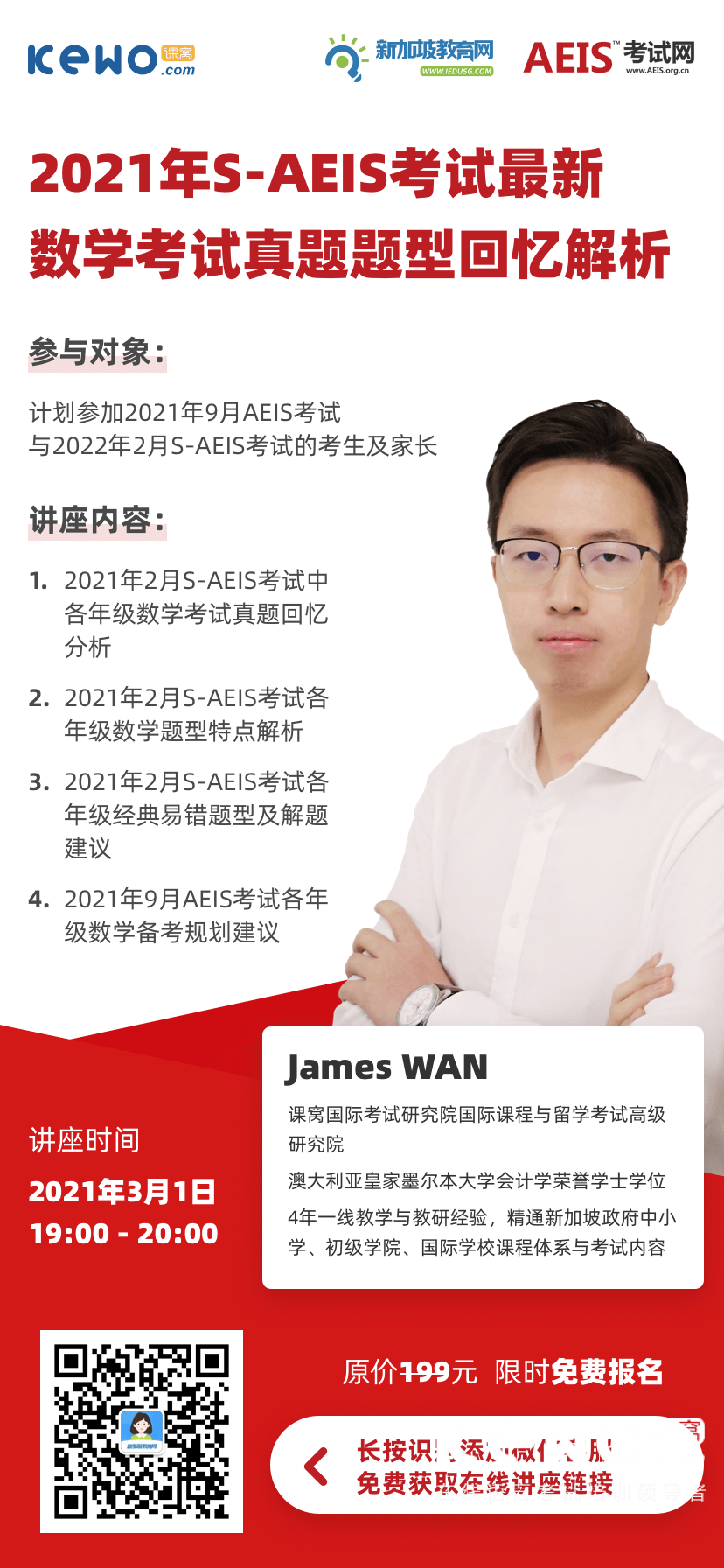 参加今年9月AEIS考试的考生又该如何规划备考,以及本次S-AEIS考试试题的难度解析,我们将于3月1日与3日晚间开设的S-AEIS真题回忆解析专项公开课将为你一一解答。