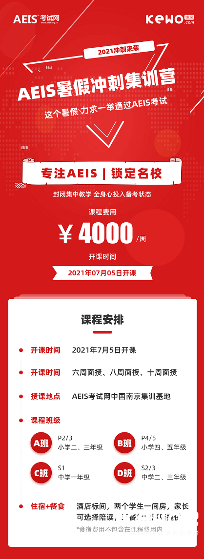 国内的中小学即将进入暑假,如果同学们想要参加2021年AEIS考试,必须要抓紧最佳冲刺时期,备考AEIS考试,因此课窝为同学们准备了AEIS暑假冲刺集训营,助力AEIS考试冲刺期!