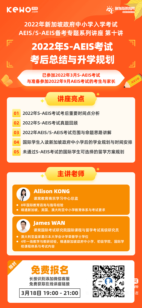 以上就是小编为大家介绍的新加坡CCA讲座相关资讯,希望可以帮助到大家,如果还想了解更多关于新加坡留学推荐信、留学新加坡学费的资讯,请多多关注本网站,也可以添加我们微信kewo11。