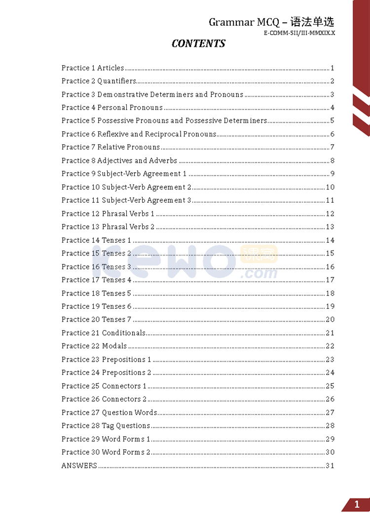 新加坡中小学AEIS S2S3入学考试简版语法讲义内含课窝精编练习题
